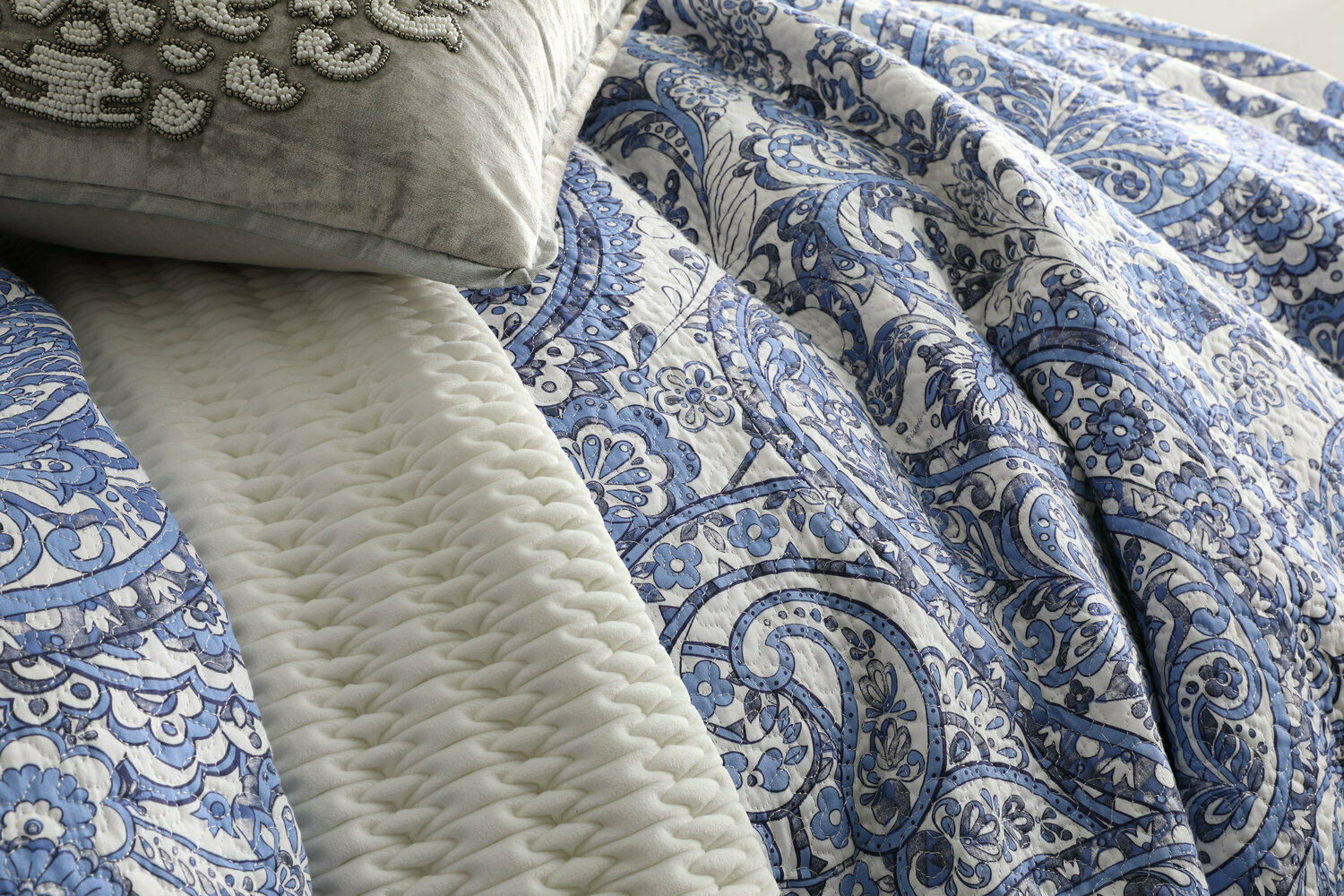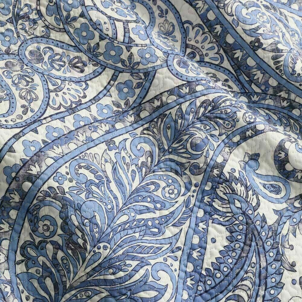 The Audenza Quilt Cover Set Range Blue by Private Collection features a bohemian sophistication style with a contemporary edit of classic paisley. The intricacies of the pattern are brought into focus by the daring scale, while the ocean inspired palette is calming and fresh. Finished with all over quilting that adds a layer of tactile comfort.